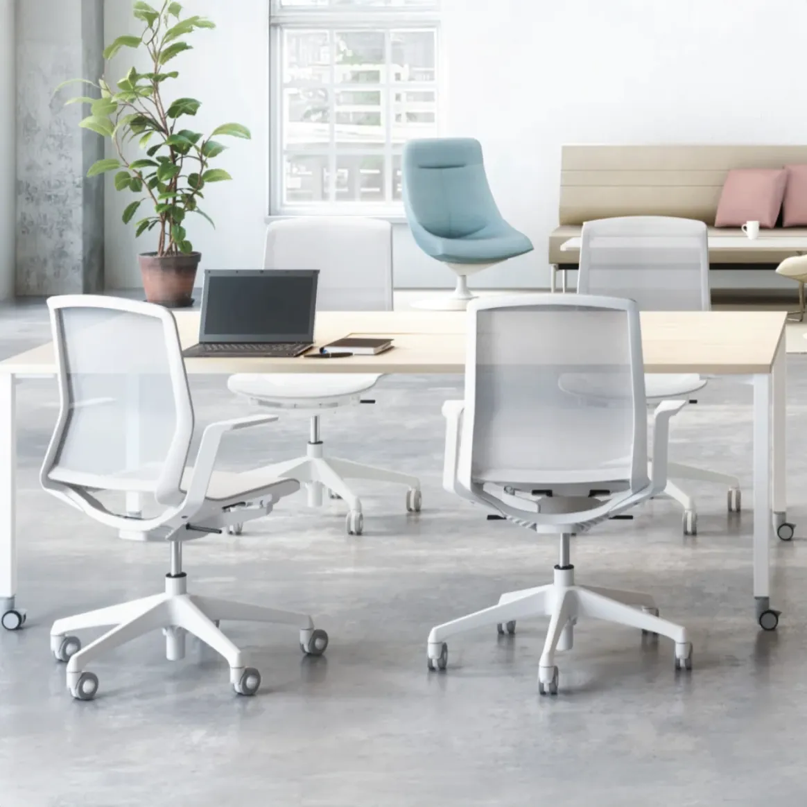 Discover the remarkable ease and elegant simplicity of CYNARA, a task chair that pairs intuitive, responsive performance with a crisp, modern aesthetic. With its impossibly light and seamless support, CYNARA is designed to elevate any workspace and the experience of its users.
